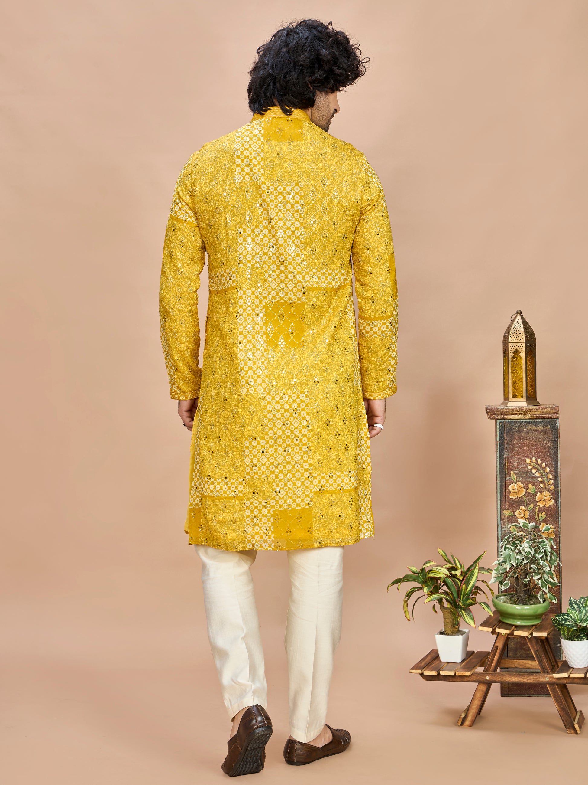 Celebrate your special moments in radiant style with this yellow silk kurta — where tradition meets festive elegance.